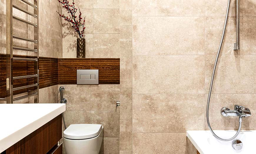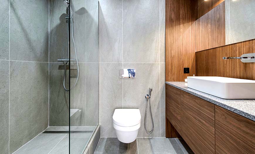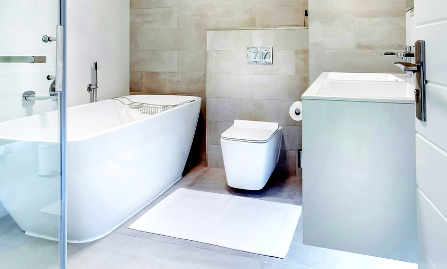 3. Reforma de baño con soluciones antideslizantes, grifería eficiente y ventilación adecuada.